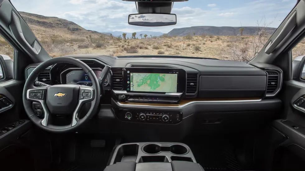 En el perfil, la Silverado mantendría sus proporciones imponentes, aunque con líneas más definidas y superficies más trabajadas para mejorar la aerodinámica. Los rines y detalles exteriores también jugarían un papel importante para diferenciar versiones orientadas al trabajo y al uso personal.